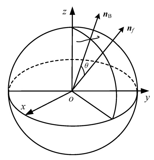 Since the polar axis nf should follow nB to change its orientation, then nB can be thought as the target orientation. When the DSCR is in different motion state, the polar axis nf and the target orientation nB have different orientation relations, the angle θ between nf and nB is defined as the orientation error of the system, as shown in Figure 6, and