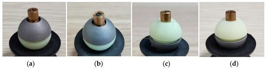 To verify the precession characteristics of the polar axis nf when the DSCR makes the period motion, four DSCR models as shown in Figure 18 were 3D printed and assembled. The four DSCR models have the same weight and size except the centroid deviation, and the centroid deviation along the polar axis nf is 4 mm, 2 mm, −2 mm, −4 mm, respectively.