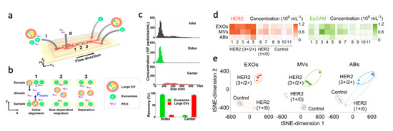 - Liu, C.; Guo, J.; Tian, F.; Yang, N.; Yan, F.; Ding, Y.; Wei, J.; Hu, G.; Nie, G.; Sun, J. Field-Free Isolation of Exosomes from Extracellular Vesicles by Microfluidic Viscoelastic Flows. ACS Nano 2017, 11, 6968–6976. [Google Scholar] [CrossRef] [PubMed]