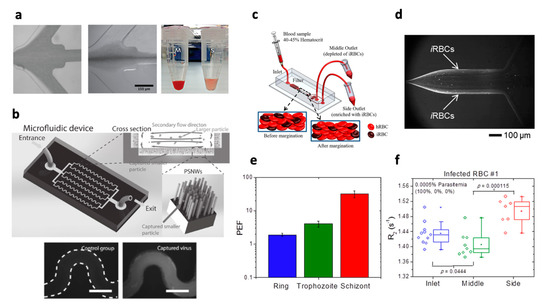 - Geislinger, T.M.; Chan, S.; Moll, K.; Wixforth, A.; Wahlgren, M.; Franke, T. Label-Free Microfluidic Enrichment of Ring-Stage Plasmodium Falciparum-Infected Red Blood Cells Using Non-Inertial Hydrodynamic Lift. Malar. J. 2014, 13, 375. [Google Scholar] [CrossRef] [PubMed][Green Version]