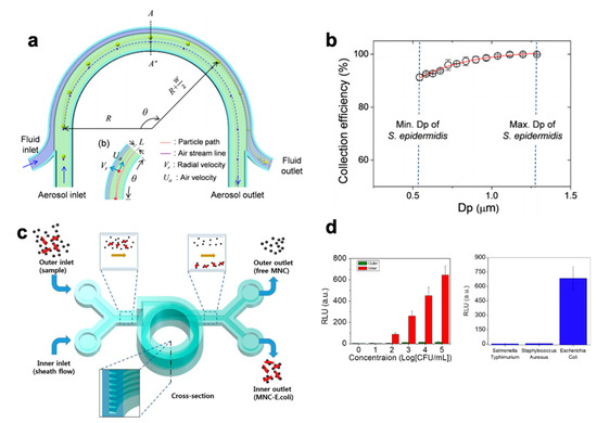 - Choi, J.; Hong, S.C.; Kim, W.; Jung, J.H. Highly Enriched, Controllable, Continuous Aerosol Sampling Using Inertial Microfluidics and Its Application to Real-Time Detection of Airborne Bacteria. ACS Sens. 2017, 2, 513–521. [Google Scholar] [CrossRef] [PubMed]