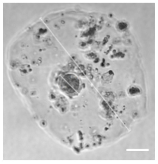 Microscopic image of an oocyte encapsulated with granulosa and theca cells. Scale bar, 100 μm.