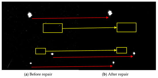 Dark field results of damage with different sizes before and after MR repair.