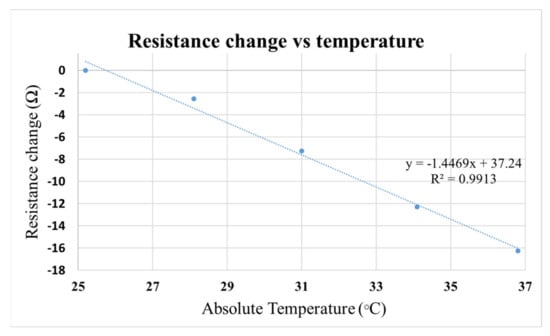 Graph showing the influence of temperature on resistance change of the cell culture medium.