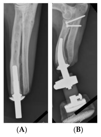 - Fitzpatrick, N.; Smith, T.J.; Pendegrass, C.J.; Yeadon, R.; Ring, M.; Goodship, A.E.; Blunn, G.W. Intraosseous Transcutaneous Amputation Prosthesis (ITAP) for Limb Salvage in 4 Dogs. Veter. Surg. 2011, 40, 909–925. [Google Scholar] [CrossRef] [PubMed]