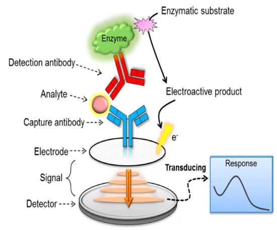 - Cho, I.-H.; Lee, J.; Kim, J.; Kang, M.-S.; Paik, J.K.; Ku, S.; Cho, H.-M.; Irudayaraj, J.; Kim, D.-H. Current technologies of electrochemical immunosensors: Perspective on signal amplification. Sensors 2018, 18, 207. [Google Scholar] [CrossRef] [PubMed]