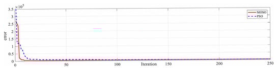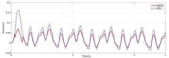 Both PSO and MPSO successfully identify the Duehm model from experimental data. The superior model identification abilities of MPSO are evident from Figure 8, Figure 9 and Figure 10. Displacement errors from experimental results are shown in Figure 8 where the Duhem model is identified by both MPSO and PSO. It can be seen that the model identified by MPSO performs better as both average and maximum errors are on the lower side as compared to the one identified by traditional PSO.