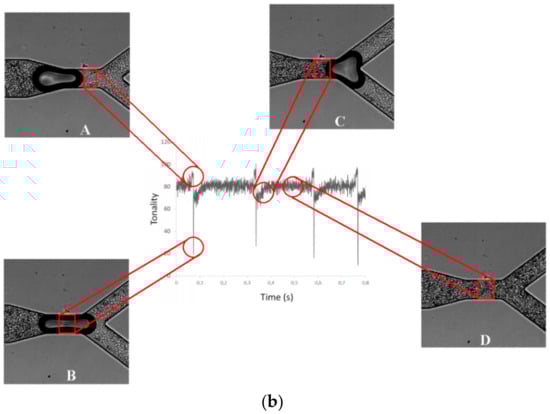 Another tool from ImageJ used in studies of blood flow is the Plot Z-axis profile. This function allows determining the tonality of the pixels in a region of the interest (ROI) through time. After selecting a particular area of the video the Plot Z-axis profile tool measures the average of tonality of the pixels in the ROI and this tonality was used as a proxy of the local hematocrit. High tonality corresponds to low hematocrit and low tonality corresponds to high hematocrit [80]. Figure 2 represents the variation in the tonality in the ROI, and consequently the variation of the hematocrit in that region, over time.