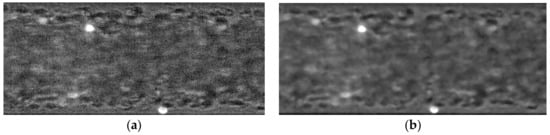 The region of interest (a) and the image filtered by using the median function medfilt2 (b).