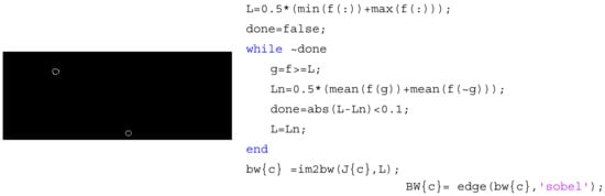 The next operation is the image noise elimination by applying the median filter, medfilt2, with one 5 × 5 pixel mask. With that, the background of the images was smooth, and the objects are enhanced preserving the edges. Figure 4 presents the result of these processes.
