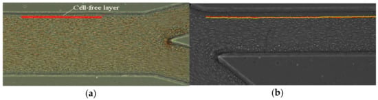 - Bento, D.; Pereira, A.I.; Lima, J.; Miranda, J.M.; Lima, R. Cell-free layer measurements ofin vitroblood flow in a microfluidic network: An automatic and manual approach. Comput. Methods Biomech. Biomed. Eng. Imaging Vis. 2018, 6, 629–637. [Google Scholar] [CrossRef]