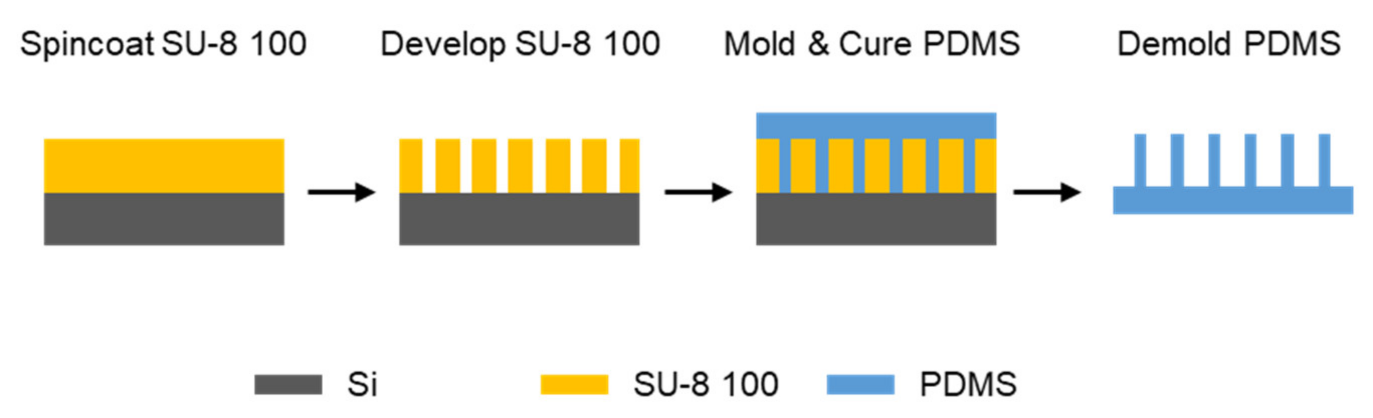 2.1. Fabrication of an Elastomer Ridge Array