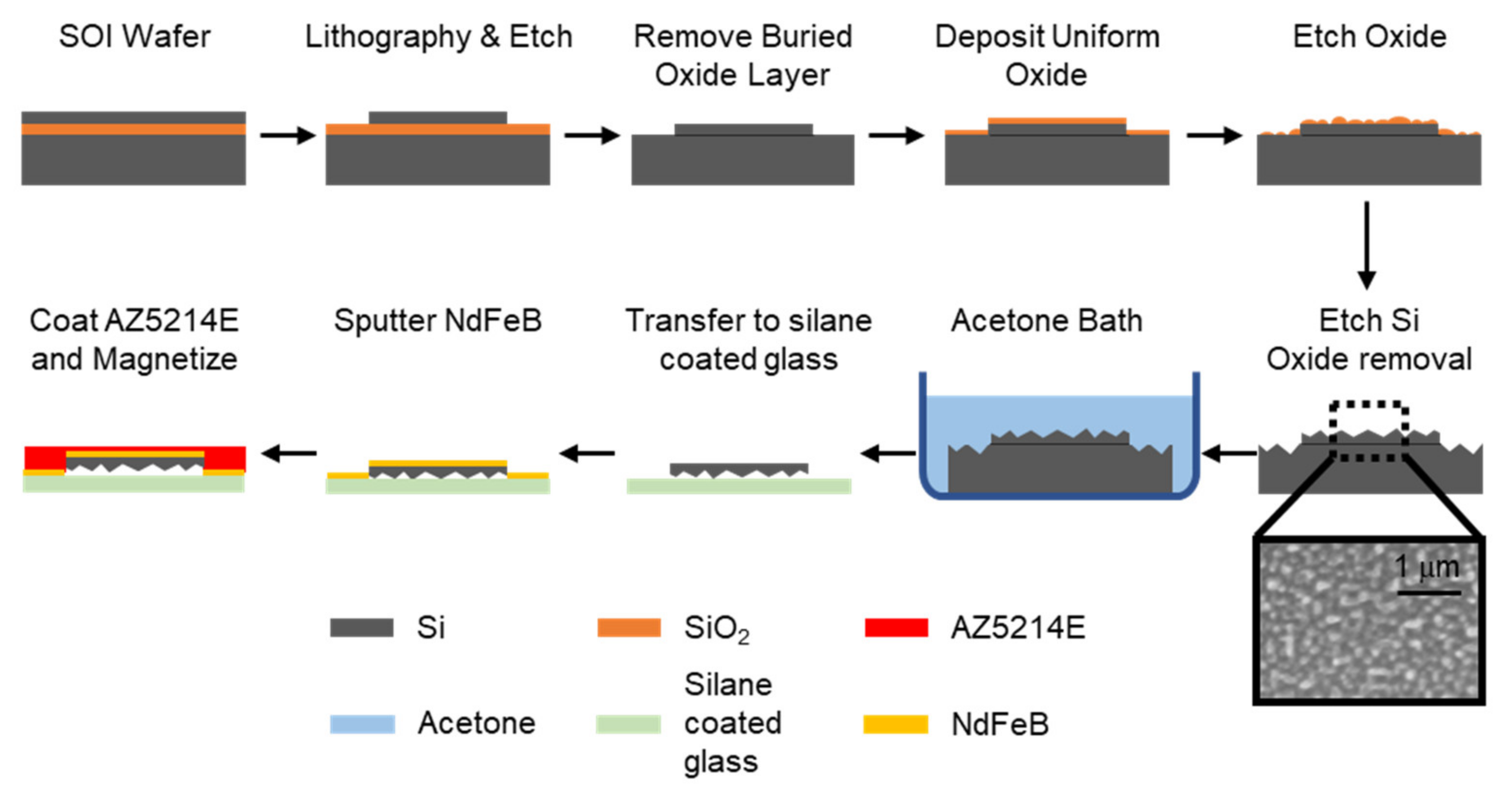 2.3. Transferring Black Silicon Strips and Sputtering a Magnetic Material