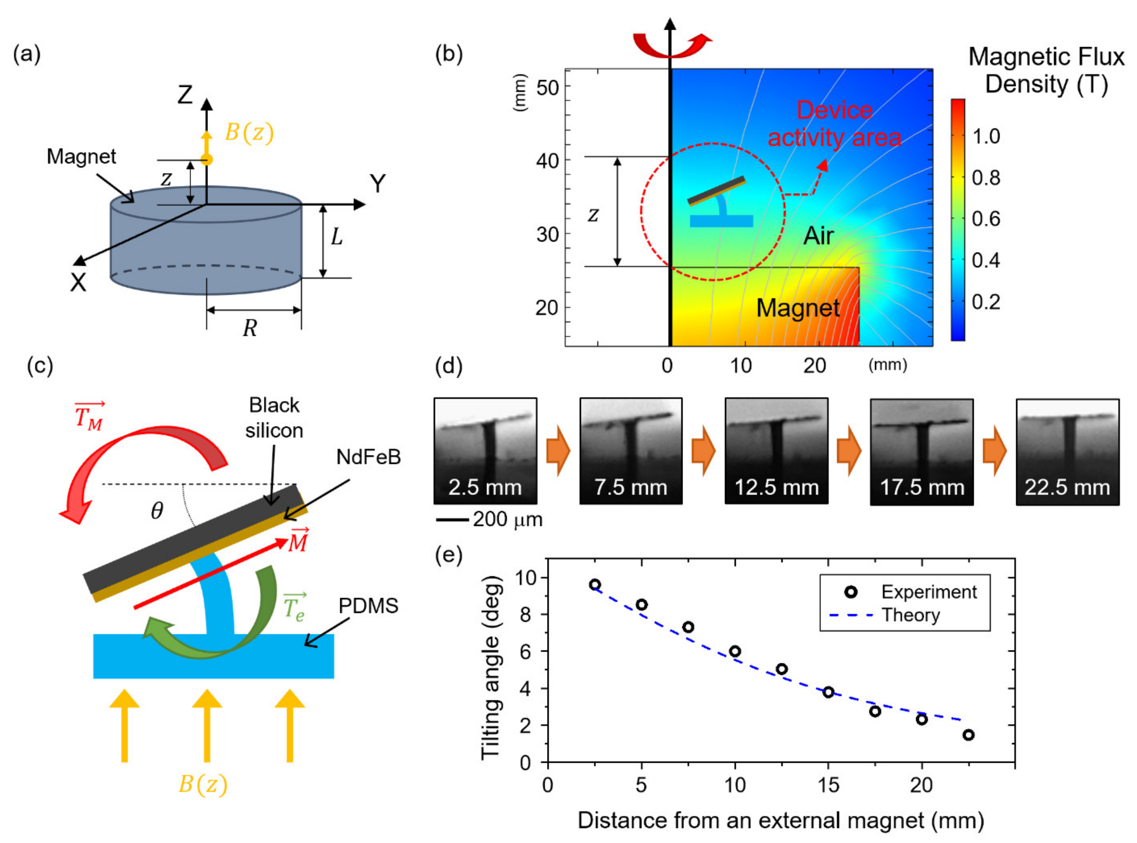 - Yang, Z.; Park, J.K.; Kim, S. Magnetically Responsive Elastomer-Silicon Hybrid Surfaces for Fluid and Light Manipulation. Small 2018, 14, 1702839. [Google Scholar] [CrossRef] [PubMed]