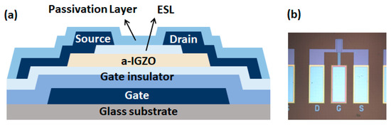 10. Lin, D.; Su, W.-C.; Chang, T.-C.; Chen, H.-C.; Tu, Y.-F.; Zhou, K.-J.; Hung, Y.-H.; Yang, J.; Lu, I.-N.; Tsai, T.-M.; et al. Degradation Behavior of Etch-Stopper-Layer Structured a-InGaZnO Thin-Film Transistors under Hot-Carrier Stress and Illumination. IEEE Trans. Electron Devices 2021, 68, 556–559. [Google Scholar] [CrossRef]