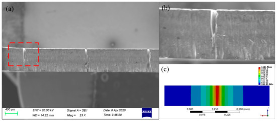 In recent years, this technology has attracted more and more attention and research from researchers. Chen et al. [15] used the finite difference method to simulate the space-time distribution of the optical power density and plasma density in the axial direction of the ultrashort pulse during transmission. The dynamic process of ultra-short pulse transmission in water is analyzed, and the research shows that too high laser power density will make the water jet reach the breakdown threshold and generate plasma, which defocus the laser pulse, leading to defects in processing. Lu et al. [16] studied the laser energy distribution in the water fiber during processing and found that the energy distribution of the laser was improved due to the influence of the water jet, the effective laser processing threshold became larger, and the energy distribution became nearly uniform. Sun et al. [17] compared the surface morphologies of water jet-guided laser processing and water-assisted laser processing of monocrystalline silicon wafers, and found that the channels processed by water-guided lasers were wide and shallow, with a “V” shape. The surface of the channel was clean, less slag, no burr, and small heat-affected zone, applied for the special problem of scribing round cutting processing. In summary, water jet-guided laser processing has great potential in the field of precision processing.