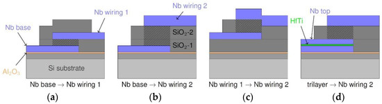 - Nagasawa, S.; Hinode, K.; Satoh, T.; Hidaka, M.; Akaike, H.; Fujimaki, A.; Yoshikawa, N.; Takagi, K.; Takagi, N. Nb 9-Layer Fabrication Process for Superconducting Large-Scale SFQ Circuits and Its Process Evaluation. IEICE Trans. Electron. 2014, 97, 132–140. [Google Scholar] [CrossRef]