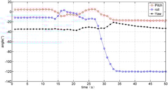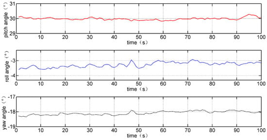 Pitch, roll, and yaw angles in the static state (when pitch angle is set to 30°).