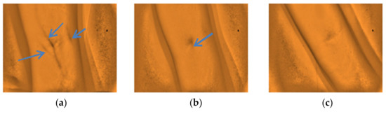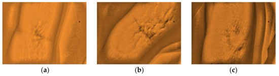 The types of captured images as results from the arm site. (a) Highly visible, (b) Visible, and (c) Non-visible using the developed vein finder.