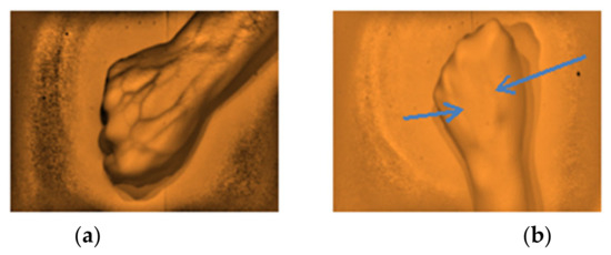 The types of captured images as results from the dorsal hand site. (a) Highly visible and (b) Visible using the developed vein finder.