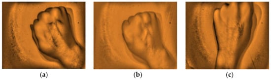 Dorsal hand images of three different subjects with hair structures with highly visible veins (a–c).