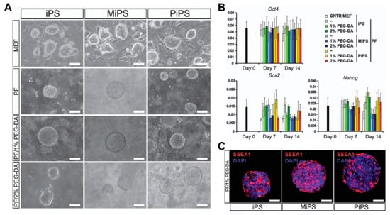 - Bearzi, C.; Gargioli, C.; Baci, D.; Fortunato, O.; Shapira-Schweitzer, K.; Kossover, O.; Latronico, M.V.G.; Seliktar, D.; Condorelli, G.; Rizzi, R. PlGF–MMP9-engineered iPS cells supported on a PEG–fibrinogen hydrogel scaffold possess an enhanced capacity to repair damaged myocardium. Cell Death Dis. 2014, 5, e1053. [Google Scholar] [CrossRef] [PubMed]