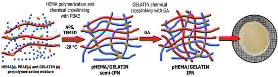 - Filipović, V.V.; Nedeljković, B.Đ.B.; Vukomanović, M.; Tomić, S.L. Biocompatible and degradable scaffolds based on 2-hydroxyethyl methacrylate, gelatin and poly(beta amino ester) crosslinkers. Polym. Test. 2018, 68, 270–278. [Google Scholar] [CrossRef]