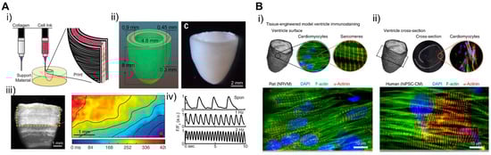 Cardiac research has been advanced based on rodent cardiomyocytes; however, there are limitations because of the differences between rodents and humans []. To address these limitations, advanced stem cell differentiation techniques have been applied to generate a reliable source of human cardiomyocytes []. The development of human embryonic stem cells (hESCs) and the discovery of induced pluripotent stem cells (iPSCs) enable the supply of human-derived cardiomyocytes, which had a significant impact on advances in the field of cardiac tissue engineering [].