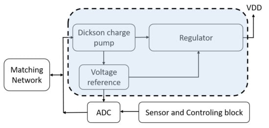 - Heidrich, J.; Brenk, D.; Essel, J.; Heinrich, M.; Jung, M.; Hofer, G.; Holweg, G.; Weigel, R.; Fischer, G. Design of a low-power voltage regulator for RFID applications. In Proceedings of the 2010 IEEE Region 8 International Conference on Computational Technologies in Electrical and Electronics Engineering (SIBIRCON), Irkutsk, Russia, 11–15 July 2010; pp. 552–557. [Google Scholar]