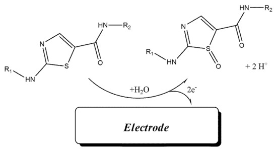 - Jesus, C.S.; Diculescu, V.C. Redox mechanism, spectrophotometrical characterisation and voltammetric determination in serum samples of kinases inhibitor and anticancer drug dasatinib. J. Electroanal. Chem. 2015, 752, 47–53. [Google Scholar] [CrossRef]