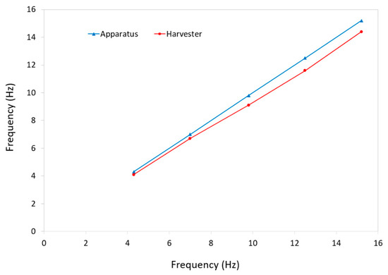 A comparison between the frequency of the testing apparatus and that of the energy harvester.
