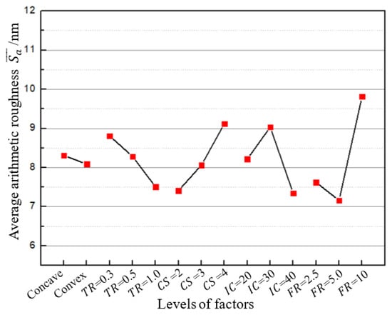4.1.1. Average Arithmetic Roughness for Various Levels of Each Factor