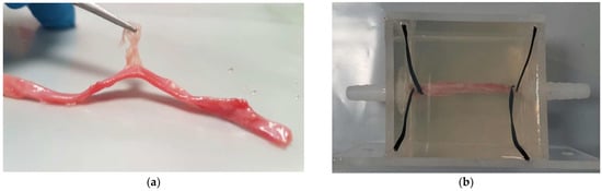 T = 25 °C, measured by DO700, Extech Instrument, Waltham, MA, USA) flowed from the reservoir to a fluid collector through the artery sample at a flow rate of 20 mL/min to mimic blood flow.