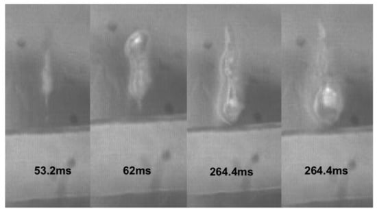 15]. Lesion formation around tubing embedded in the polyacrylamide gel phantom by HIFU ablation was photographically recorded using a high-speed camera. Bubble cavitation and the formation of a liquid jet may be one of the major mechanisms of tubing rupture. To further confirm such observations in more closely clinical conditions,
