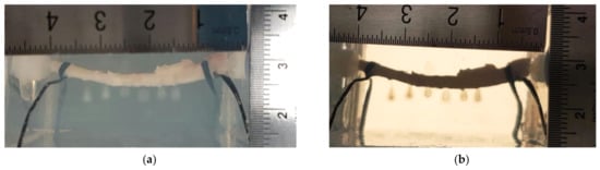 Clear acrylic plastic sheets with a thickness of 3 mm were used as the building material and glued to the phantom model with dimensions of around 60 mm × 40 mm × 50 mm using an all-purpose epoxy (Pioneer, Singapore). Two straight tube connectors (Cole-Parmer, Vernon Hills, IL, USA) were fixed onto the mold using the epoxy, and the artery was connected to it and routed between the connector barbs (sometimes, binding wires were used to enhance the attachment). This epoxy provided better holding strength between acrylic sheets and between the tube connector and clear acrylic sheet. The porcine artery was connected with the tube connectors inside the model first, smeared with ethanol (Sigma-Aldrich, Munich, Germany) on the outer surface to decrease the surface tension and minimize the bubble adhering to the artery wall, and then the BSA gel mixture was poured into the model. After the solidification of polyacrylamide hydrogel, the artery was embedded inside the gel phantom (see