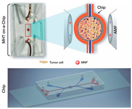 - Mamani, J.B.; Marinho, B.S.; Rego, G.N.D.; Nucci, M.P.; Alvieri, F.; dos Santos, R.S.; Ferreira, J.V.M.; de Oliveira, F.A.; Gamarra, L.F. Magnetic hyperthermia therapy in glioblastoma tumor on-a-Chip model. Einstein-Sao Paulo 2020, 18. [Google Scholar] [CrossRef]