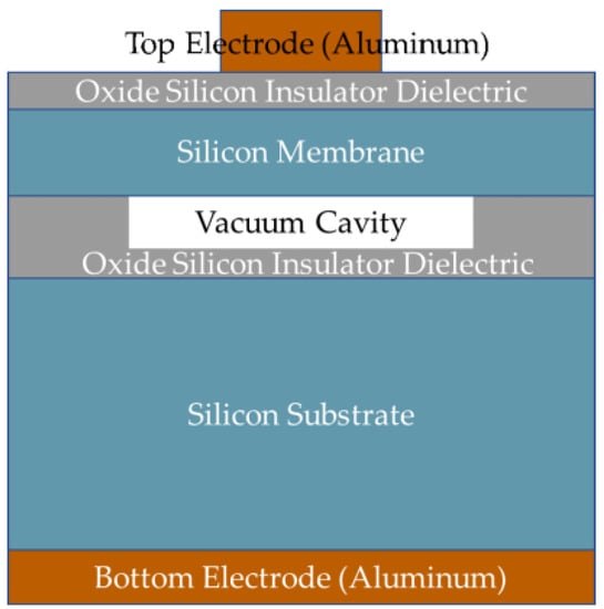 Cross-section of a single capacitive micromachined ultrasound transducer (CMUT) cell.