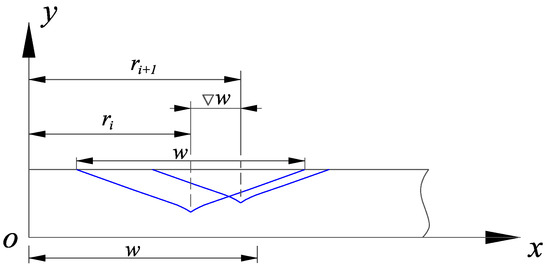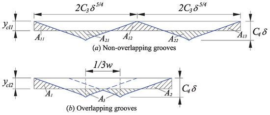 The view of non-overlapping and overlapping grooves can be illustrated in Figure 6a,b, respectively. The center lines of non-overlapping and overlapping grooves and can be calculated according to the definition of the center line described in Equation (10). Then, the overlapping factor can be derived with the comparison of the non-overlapping and overlapping groove sections.