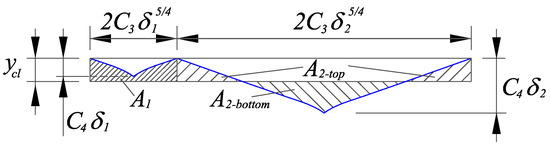 As shown in Figure 6, the overlapping degree of the areas above and below the center line was assumed to be constant. In this case, the area above the center line was chosen to calculate the overlapping factor , which is the ratio of the area with overlapping to the area without overlapping. The specific expression of is described as: