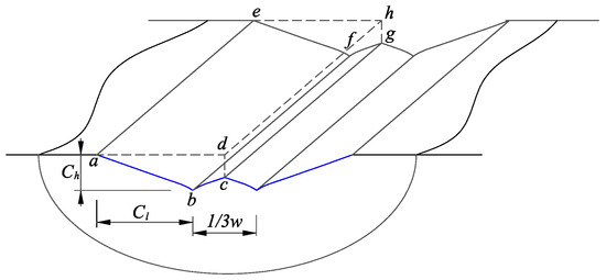As shown in Figure 7, two types of grooves are generated during the UVAG of ceramics, which depend on the relative position between the depth of the radial crack and the center line . In this section, the center line was calculated to deduce the expected value of the surface roughness .