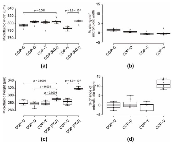 - Yi, L.; Xiaodong, W.; Fan, Y. Microfluidic chip made of COP (cyclo-olefin polymer) and comparion to PMMA (polymethylmethacrylate) microfluidic chip. J. Mater. Process. Technol. 2008, 208, 63–69. [Google Scholar] [CrossRef]