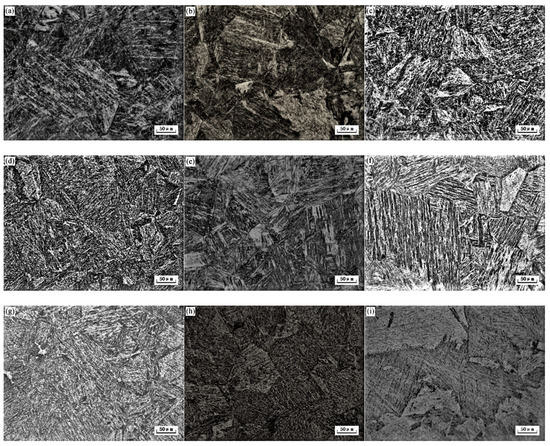 Optical photomicrographs show the effect of aging temperature on optical microstructure. (a) Under aging; (b) 200 °C; (c) 500 °C; (d) 535 °C; (e) 540 °C; (f) 560 °C; (g) 600 °C; (h) 650 °C; (i) 700 °C.