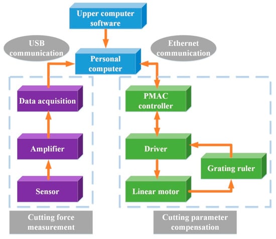 Figure 3 shown the control system diagram of the proposed device, which is also mainly divided into two parts. One is the force analog signal outputted by the force sensor being amplified and collected. The signal is transmitted to the computer after A/D conversion from the USB port and processed by the upper computer software to get the final measured cutting force value. Another is to realize the servo control of the linear motor for the compensations.