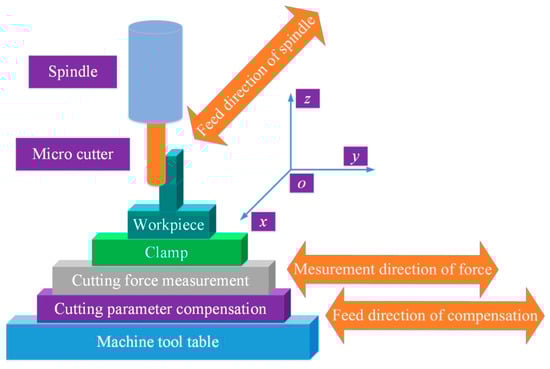 The machining quality can be improved and the dimensional errors can be reduced by optimizing the tool path to compensate the cutting parameters []. However, it is necessary to modify the original tool path if considering the tool path compensation, which seriously affects the machining efficiency. Therefore, a device for cutting force measurement and cutting parameter compensation is developed in this study. It can measure the radial cutting force perpendicular to the thin wall that generated in the thin wall cutting process. Then, the radial cutting parameter is compensated according to the value of the cutting force.