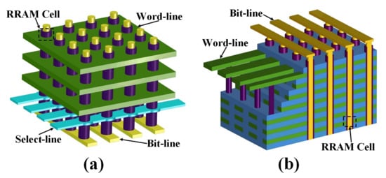- Chen, P.; Li, Z.; Yu, S. Analysis of vertical cross-point resistive memory (VRRAM) for 3D RRAM design. IEEE Trans. Very Large Scale Integr. Syst. 2016, 24, 3460–3467. [Google Scholar] [CrossRef]
