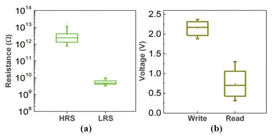 - Zhao, X.; Song, P.; Gai, H.; Li, Y.; Ai, C.; Wen, D. Li-Doping Effect on Characteristics of ZnO Thin Films Resistive Random Access Memory. Micromachines 2020, 11, 889. [Google Scholar] [CrossRef] [PubMed]