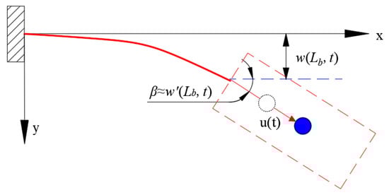 The deformation diagram of the cantilever beam is shown in Figure 3. The fixed end of the cantilever beam is set as the origin of coordinates, the direction along with the initial position and the direction perpendicular to the x-axis is set as the y-axis direction. The angle between the end of the cantilever beam and the horizontal plane is , represents the displacement of the end of the cantilever beam along the y-axis, and u(t) represents the relative displacement of the spring relative to the free extension position during the vibration of the magnet.