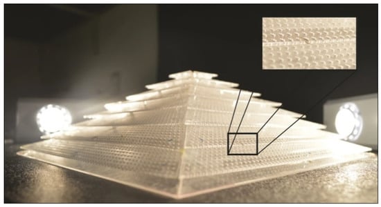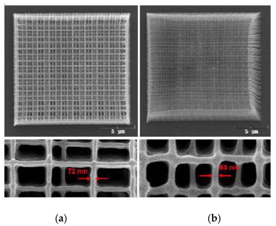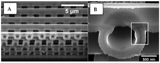 - Gratson, G.M.; García-Santamaría, F.; Lousse, V.; Xu, M.; Fan, S.; Lewis, J.A.; Braun, P.V. Direct-write assembly of three-dimensional photonic crystals: Conversion of polymer scaffolds to silicon hollow-woodpile structures. Adv. Mater. 2006, 18, 461–465. [Google Scholar] [CrossRef]