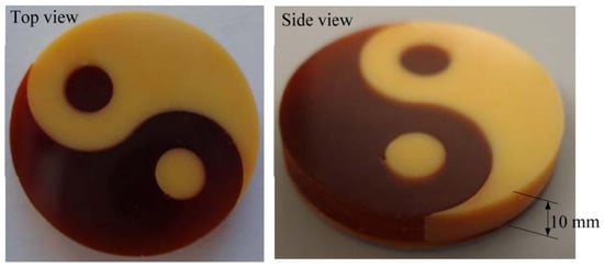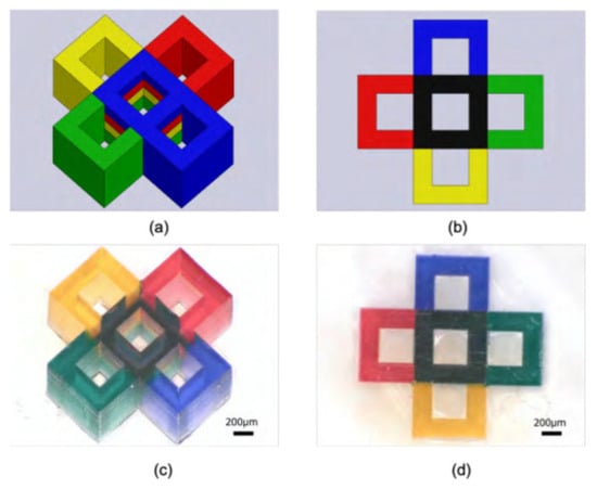 - Maruyama, T.; Hirata, H.; Furukawa, T.; Maruo, S. Multi-material microstereolithography using a palette with multicolor photocurable resins. Opt. Mater. Express 2020, 10, 2522–2532. [Google Scholar] [CrossRef]