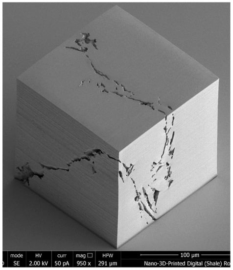 - Goral, J.; Deo, M. Nanofabrication of synthetic nanoporous geomaterials: From nanoscale-resolution 3D imaging to nano-3D-printed digital (shale) rock. Sci. Rep. 2020, 10, 21596. [Google Scholar] [CrossRef] [PubMed]